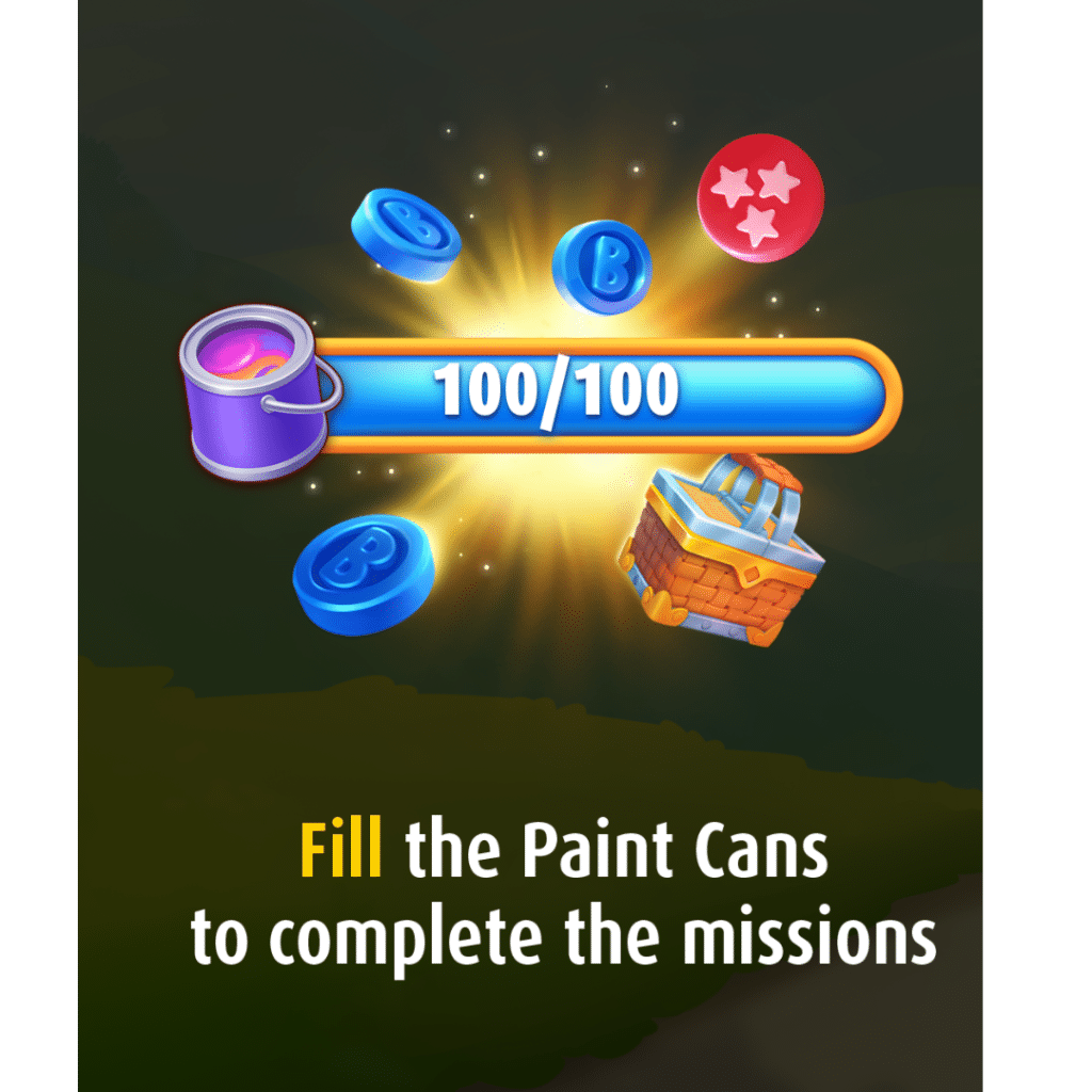 – Fill the Paint Can Bar to complete each Mission and win colorful prizes!