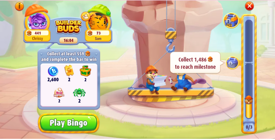 Jump into Bingo Blitz and meet your Builder Buds today! Team up, collect points, and watch your beaver buddies build their way to amazing prizes.