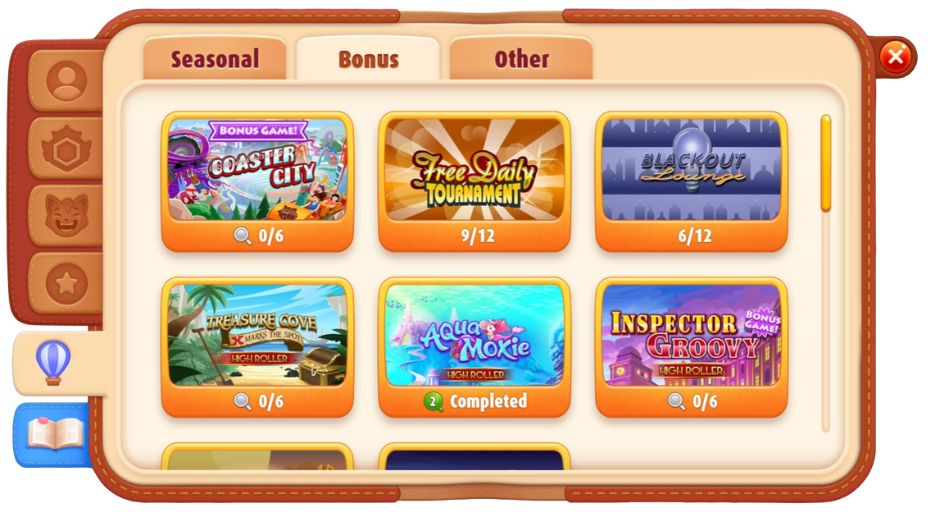 More specifically, here you can check what items you have in your Seasonal and Bonus rooms, as well as the Slots ones!