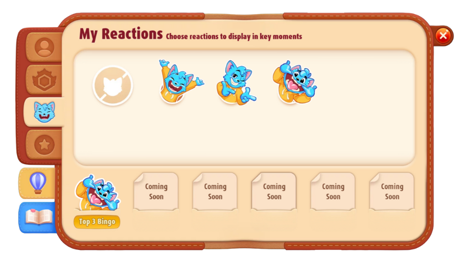 When you get one of the top 3 bingos in a round, pick one of the available Reactions and they’ll pop-up from your avatar.