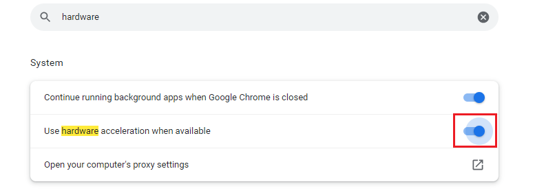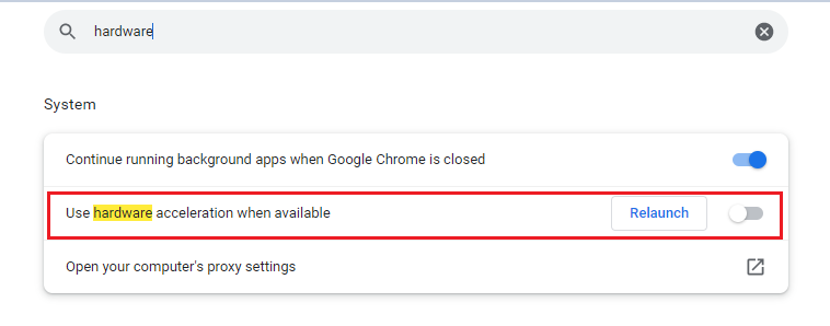 - Click on the toggle and relaunch the browser