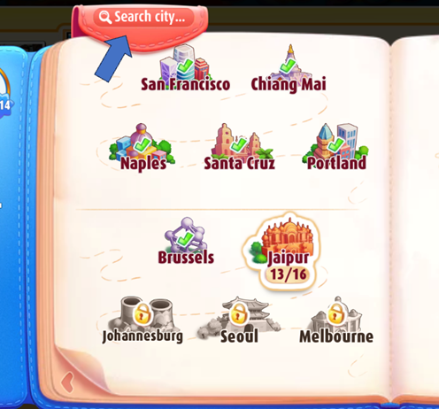 The Adventure Book is making things even simpler with the Search feature. Just click on ‘All Cities’ at the bottom of the book and write the city you’re looking for in the Search bar at the top of your Book.